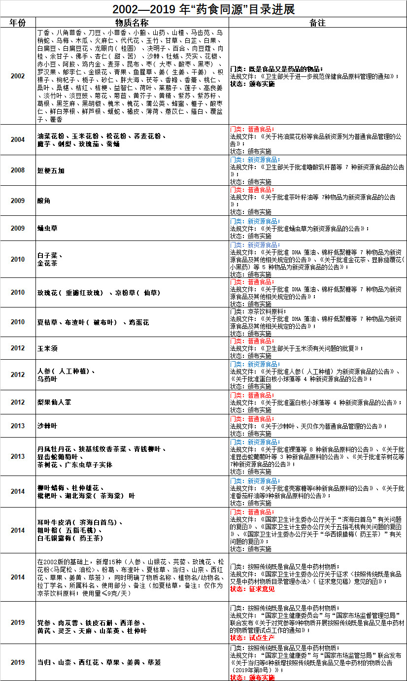 药品范畴,只能在药用渠道流通和销售,用量受到极大限制。即使打着农副产品的擦边球,其销量也极其有限。一旦进入药食同源目录,各种形式的食品、
